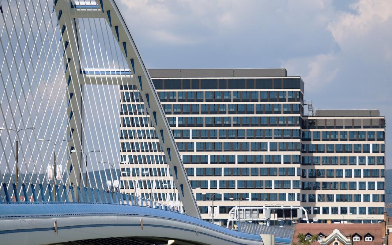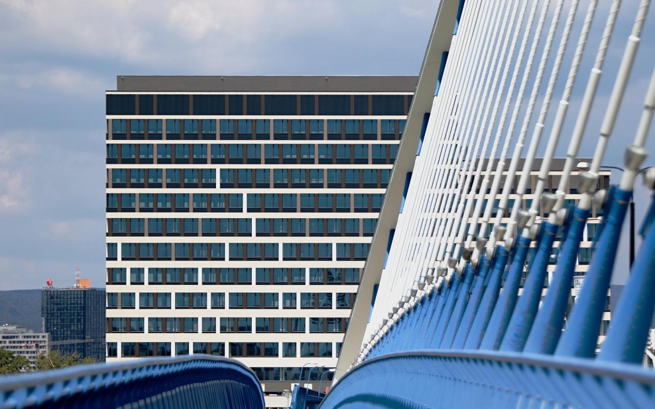 The building has eight smart lifts that save both energy and valuable time. A café and 270-person canteen will also serve the building users’ refreshment needs. Benefits of the new EUROVEA CITY quarter include the opportunity to enjoy a diverse range of restaurants and services at nearby business centres, and to dine amidst the attractive riverside surroundings of Eurovea Shopping Centre or PANORAMA PARK - the first such business park in Bratislava.