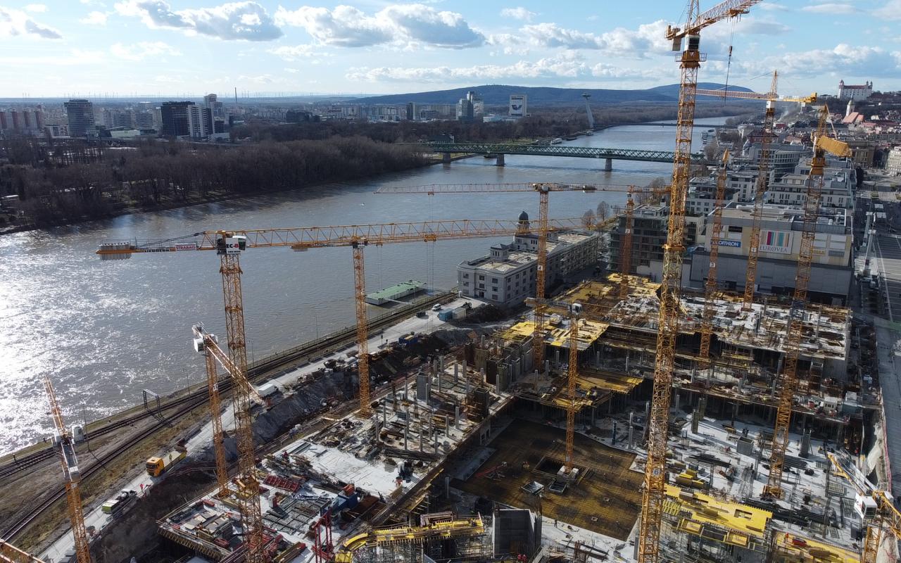 Stavebné práce na projekte rozšírenia nákupného centra Eurovea, dvoch administratívnych budov a bytových domov, vrátane prvého slovenského mrakodrapu sa dostali cez „magickú“ hranicu prízemia. Tri podzemné podlažia sú už na väčšine plochy vybudované a jednotlivé časti tak rastú, respektíve budú postupne rásť do výšky.